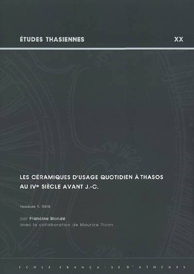 Une étude de la céramique non figurée du IVe siècle av. J.-C. de la ville de Thasos. L'ouvrage fait part de l'important travail exercé en laboratoire et sur le terrain pour déterminer l'origine des vases, et discute des apports et des limites d'un étude céramologique. Une version synthétique des principaux types et variantes par forme est présentée dans le 2e fascicule.