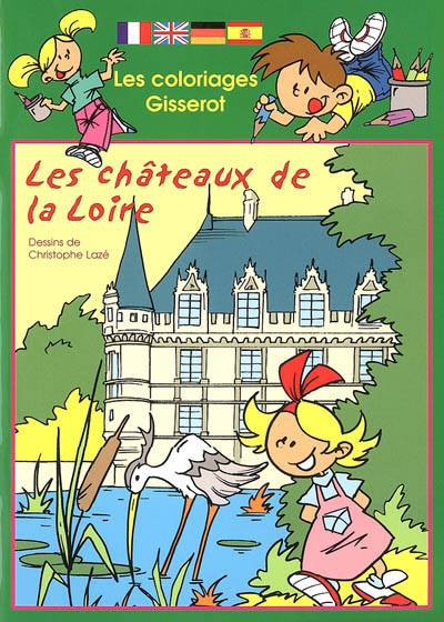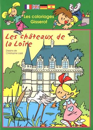Album de coloriage sur les châteaux de la Loire avec légendes des images en français, anglais, espagnol et allemand.