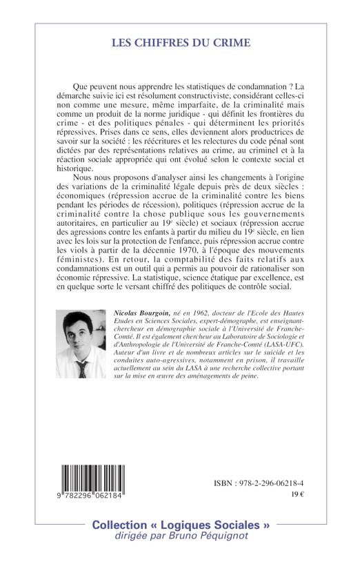 Cet ouvrage analyse les changements à l'origine des variations de la criminalité légale depuis près de deux siècles : économiques (répression accrue de la criminalité contre les biens pendant les périodes de récession), politiques (répression accrue de la criminalité contre la chose publique sous les gouvernements autoritaires) et sociaux (répression accrue des agressions contre les enfants en lien avec les lois sur la protection de l'enfance, contre les viols à l'époque des mouvements féministes)...
