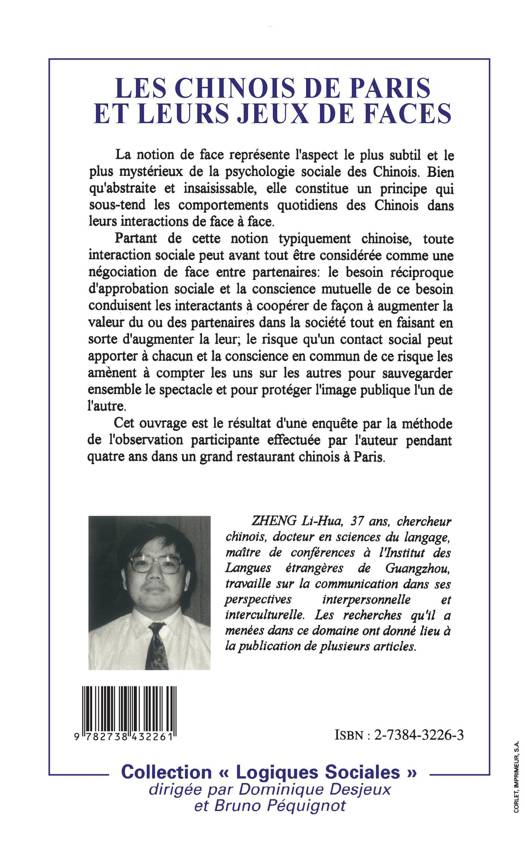 Partant de la notion de face, aspect le plus subtil de la psychologie sociale des Chinois, une étude sur l'interaction sociale, considérée comme une négociation de face entre partenaires. Cet ouvrage est le résultat d'une enquête par la méthode de l'observation participante effectuée par l'auteur pendant quatre ans dans un grand restaurant chinois de Paris.