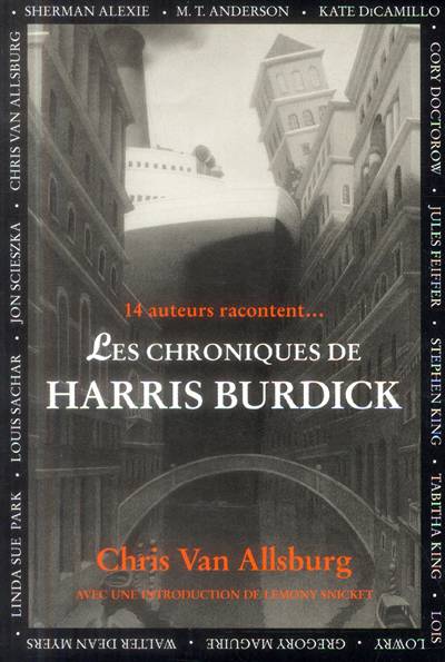 Quatorze grands auteurs d'aujourd'hui se sont fondus dans les dessins de Harris Burdick, et vous invitent à les rejoindre : Tabitha King, Jon Scieszka, Sherman Alexie, Gregory Maguire, Cory Doctorow, Jules Feiffer, Linda Sue Park, Walter Dean Myers, Lois Lowry, Kate DiCamillo, M.T Anderson, Louis Sachar, Stephen King et Chris Van Allsburg.