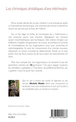 Sur un ton léger et drôle, les chroniques de "l'Intérimaire", une anonyme parmi tant d'autres, dépeignent ses missions autant rocambolesques que burlesques. A travers ce nouveau roman, Michèle Madar décrit avec amusement et tendresse, mais sans complaisance, le sort qui est fait à ses semblables dans un monde en mutation.