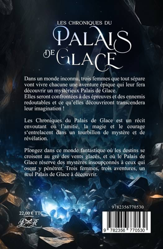 Dans un monde à la beauté lyrique, trois femmes s'apprêtent à effectuer le plus extraordinaire des voyages, celui qui mène aux portes du Palais de Glace. C'est un périple dangereux qui les attend, jalonné de terribles épreuves et de redoutables ennemis. Les Chroniques du Palais de Glace est un récit envoûtant où l'amitié, la magie et le courage s'entrelacent dans un tourbillon de mystères et de révélations. Plongez dans cet univers fantastique où les destins de chacun se croisent au gré de vents glaciaux !. Osez pousser les portes du Palais de Glace, afin d'en contempler les secrets inviolés! Mais prenez garde que la vérité ne transcende votre imagination ! Trois femmes, deux mondes, un seul Palais de Glace.