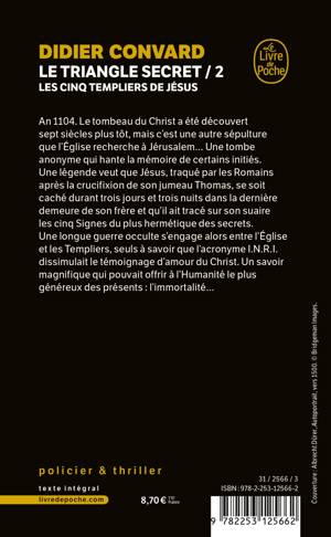 An 1104. Le tombeau du Christ a été découvert sept siècles plus tôt, mais c’est une autre sépulture que l’Église recherche à Jérusalem… Une tombe anonyme qui hante la mémoire de certains initiés. Une légende veut que Jésus, traqué par les Romains après la crucifixion de son jumeau Thomas, se soit caché durant trois jours et trois nuits dans la dernière demeure de son frère et qu’il ait tracé sur son suaire les cinq Signes du plus hermétique des secrets de l’Humanité… Une longue guerre occulte s’engage alors entre l’Église et les Templiers, seuls à savoir que l’acronyme I.N.R.I. dissimulait le témoignage d’amour du Christ. Un savoir magnifique qui pouvait offrir à l’Humanité le plus généreux des présents : l’immortalité…