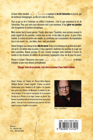 Le best-seller mondial ''Le Secret'' a expliqué la loi de l'attraction et prouvé, par de nombreux témoignages, qu'elle est vraie et efficace. Tout ce qui se vit à l'intérieur se reflète à l'extérieur : c'est là que commence la loi de l'attraction. Pour que votre taux vibratoire soit à son maximum, il faut gérer vos pensées afin d'augmenter la matière énergétique. Mais encore faut-il savoir penser ! Facile, dites-vous ! Toutefois, nous portons souvent le poids négatif de nos pensées, à notre insu ou non, et des idées du genre : la peur d'être malade, la crainte de perdre son emploi, les problèmes qui s'accumulent, les inquiétudes face à son avenir, etc... Daniel Sévigny vous donne ici les clés du secret. Grâce à la technique de gestion de la pensée qu'il a lui-même mise au point, il nous apprend à maîtriser nos pensées et à agir sur notre quotidien. Depuis presque 20 ans, l'auteur enseigne cette méthode à travers le monde et des dizaines de milliers de personnes l'appliquent à leur vie de tous les jours.