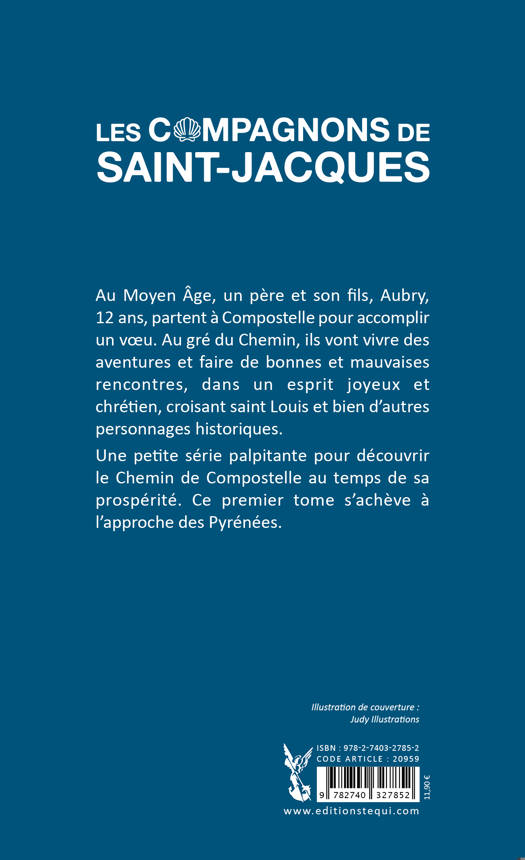 En 1244, Aubry et son père prennent la route pour Compostelle afin de remercier saint Jacques d’avoir intercédé pour la guérison de la petite Marie qui était mourante. En chemin, ils rencontrent un paysan qui veut se débarrasser d'un cheval récalcitrant. Ils lui viennent en aide et reçoivent le cheval en cadeau, pour la grande joie d'Aubry. À Rocamadour, un étrange pèlerin lui offre une coquille qu'il met fièrement sur son chapeau. Puis un jeune seigneur l'aide à maîtriser son cheval : il s'agit de saint Louis ! Là, ils se joignent à un groupe de pèlerins mené par Messire Hugues et Aubry fait la connaissance de Renaud, un garçon de son âge espiègle et fantasque , ils deviennent aussitôt inséparables. Puis ils rencontrent un orphelin, Josselin, qui semble cacher un lourd secret. Aubry et Renaud, les Compagnons de Saint-Jacques, vont prendre Josselin sous leur aile et mettre leur courage, leur fougue et leur générosité au service des gens qu’ils rencontrent.