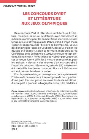 Des concours d’art et littérature (architecture, littérature, musique, peinture, sculpture), avec classement et médailles comme pour les compétitions sportives, se sont tenus aux Jeux Olympiques de 1912 à 1948. Il s’agit d’une «  pépite  » méconnue de l’histoire de l’olympisme. Voulus dès l’origine par Pierre de Coubertin, désireux d’allier «  le muscle et l’esprit  », selon sa formule, instaurés par la Conférence de la Sorbonne de 1906, ils connurent sept éditions. Dénommés «  Pentathlon des Muses  » par Coubertin, ces concours furent difficiles à mettre en œuvre car, pour les artistes, «  classer  » des œuvres d’art est contraire à l’esprit de création. Néanmoins, près de 150  artistes ont été médaillés lors de ces concours. Plus de 3  500 œuvres ont été présentées dans ce cadre.