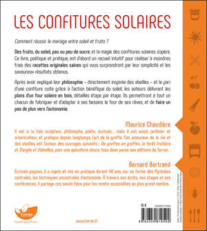 Des fruits, du soleil, pas ou peu de sucre, et la magie des confitures solaires s'opère. Ce livre, poétique et pratique, est d'abord un recueil intuitif pour réaliser à moindres frais des recettes originales saines qui vous surprendront par leur simplicité et les savoureux résultats obtenus. Après avoir expliqué leur philosophie - directement inspirée des abeilles - et le pari d'une confiture cuite grâce à l'action bénéfique du soleil, les auteurs délivrent les plans d'un four solaire en bois, détaillés étape par étape. Ils permettront à tout un chacun de fabriquer et d'adapter à ses besoins le four de ses rêves, et de faire un pas de plus vers l'autonomie. Remplace EAN 9782359810127.