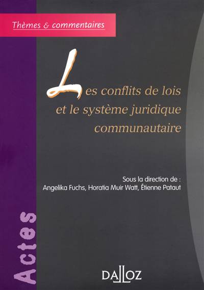 Le droit communautaire s'impose progressivement aux Etats membres dans divers secteurs. Toutefois, aucune théorie générale du conflit de lois dans ce système juridique ne semble encore émerger. L'unification dans ce domaine demeure disparate, sectorielle et peu susceptible de faire l'objet d'une théorie générale d'envergure.