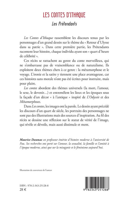 Les Contes d'Ithaque rassemblent les discours tenus par les personnages d'un grand dessin sur le thème du « Retour d'Ulysse dans sa patrie ». Dans cette première partie, les Prétendants racontent leur histoire, chaque individu ayant son « quart d'heure de célébrité ». Les contes abordent des thèmes universels (la mort, l'amour, le sexe, le devenir ) et entremêlent les lieux et les époques sous la façade d'un décor « à l'antique » inspiré de L'Odyssée et des Métamorphoses. Dans Les contes, les images ont la parole. Le dessin ayant précédé les discours d'un quart de siècle, les portraits des personnages ne sont pas des illustrations mais des sources d'inspiration. Au fil des récits se dessine une réflexion sur le statut de vérité de l'image, qui révèle et dévoile, mais aussi dissimule et ment.