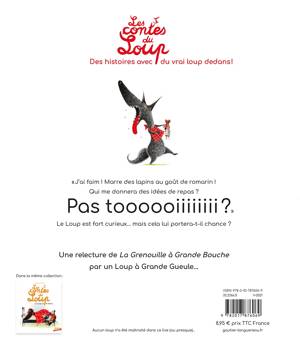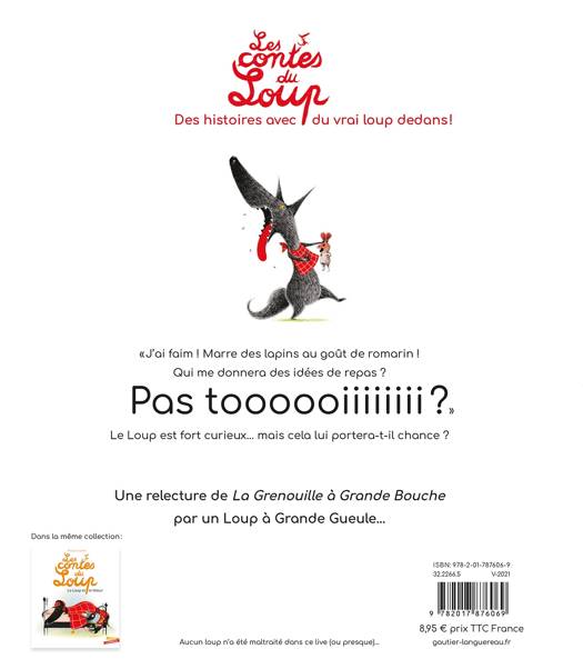 Ce matin le loup est contrarié ! Il en a marre de manger du lapin sans arrêt, alors c’est décidé, il va sortir de la forêt à la recherche d’un nouveau repas savoureux. Pour choisir, il doit savoir ce que mangent ses futures proies. Il risque d’être surpris. Une histoire inspirée du conte La Grenouille à grande bouche.