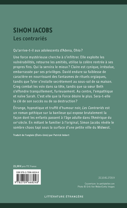 Étrange, hypnotique et truffé d’humour noir, Les Contrariés est un roman gothique sur la banlieue qui expose brutalement la façon dont les enfants passent à l’âge adulte dans l’Amérique du siècle. En mêlant le familier à l’original, Simon Jacobs révèle le XXIe sombre chaos tapi sous la surface d’une petite ville du Midwest.