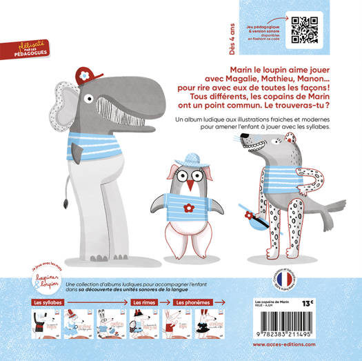 Marin le loupin aime jouer avec Magalie, Mathieu, Manon… pour rire avec eux de toutes les façons ! Tous différents, les copains de Marin ont un point commun. Le trouveras-tu ?