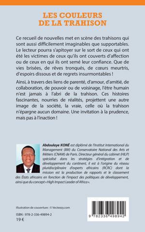 Ce recueil de nouvelles met en scène des trahisons qui sont aussi difficilement imaginables que supportables. Le lecteur pourra s'apitoyer sur le sort de ceux qui ont été les victimes de ceux qu'ils ont couverts d'affection ou de ceux en qui ils ont semé leur confiance. Que de vies brisées, de rêves tronqués, de coeurs meurtris, d'espoirs dissous et de regrets insurmontables ! Ainsi, à travers des liens de parenté, d'amour, d'amitié, de collaboration, de pouvoir ou de voisinage, l'être humain n'est jamais à l'abri de la trahison. Ces histoires fascinantes, nourries de réalités, projettent une autre image de la société, la vraie, celle où la trahison n'épargne aucun domaine. Une invitation à la prudence, mais pas à l'inaction !
