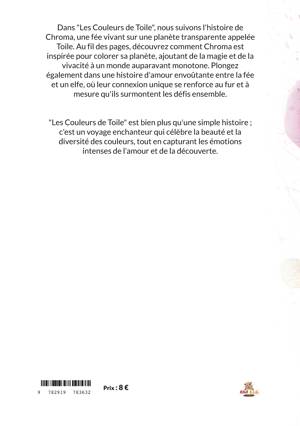 Dans "Les Couleurs de Toile", nous suivons l'histoire de Chroma, une fée vivant sur une planète transparente appelée Toile. Au fil des pages, découvrez comment Chroma est inspirée pour colorer sa planète, ajoutant de la magie et de la vivacité à un monde auparavant monotone. Plongez également dans une histoire d'amour envoûtante entre la fée et un elfe, où leur connexion unique se renforce au fur et à mesure qu'ils surmontent les défis ensemble.