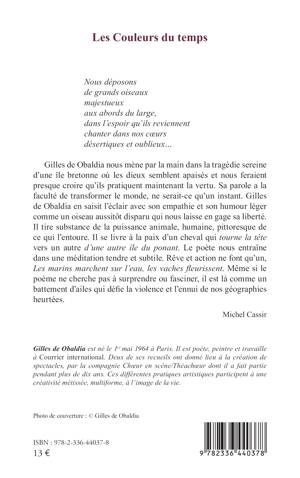 désertiques et oublieux... Gilles de Obaldia nous mène par la main dans la tragédie sereine d'une île bretonne où les dieux semblent apaisés et nous feraient presque croire qu'ils pratiquent maintenant la vertu. Sa parole a la faculté de transformer le monde, ne serait-ce qu'un instant. Gilles de Obaldia en saisit l'éclair avec son empathie et son humour léger comme un oiseau aussitôt disparu qui nous laisse en gage sa liberté.