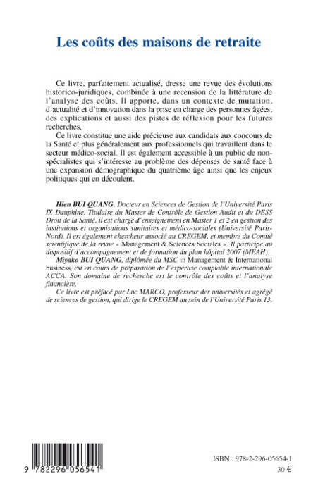 Ce livre, parfaitement actualisé, dresse une revue des évolutions historico-juridiques, combinée à une recension de la littérature de l'analyse de coûts de la prise en charge des personnes âgées. Il dresse un bilan sur les problèmes des dépenses de santé face à l'expansion démographique du quatrième âge ainsi que les enjeux politiques qui en découlent.