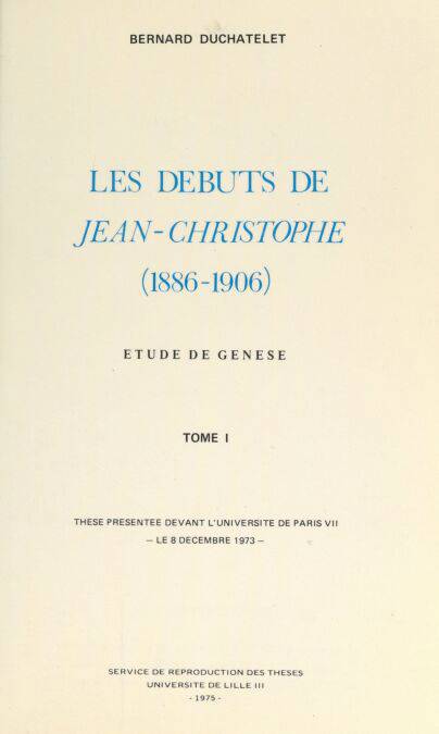 5. Les débuts de « Jean-Christophe », 1886-1906. Étude de genèse (1)