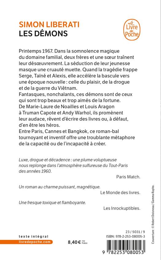 Fantasques, nonchalants, ces démons sont de ceux qui sont trop beaux et trop aimés de la fortune. De Marie-Laure de Noailles et Louis Aragon à Truman Capote et Andy Warhol, ils promènent leur audace, rêvent d’écrire des livres ou, à défaut, d’en être les héros.