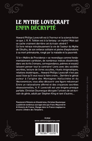 Si le « Maître de Providence » se revendique comme fondamentalement cartésien, de nombreux indices disséminés dans ses écrits (romans, correspondance, poèmes et essais) laissent penser tout le contraire ! Liens avec des sociétés secrètes, lecture de livres occultes, participation à des rituels énigmatiques, relations ésotériques… Howard Phillips Lovecraft n’est pas aussi lisse qu’il veut nous le faire croire… Derrière le génial auteur à l’origine des Montagnes Hallucinées et du Necronomicon, vous allez découvrir une figure méconnue ! Entre un rationalisme affirmé et des croyances secrètes obsessionnelles, H. P Lovecraft est une énigme presque parfaite. Christian Doumergue décrypte l’univers de cet écrivain de génie, adulé par Stephen King et tant d’autres...