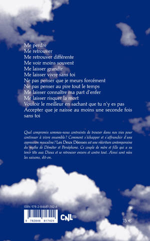 Les Deux Déesses se présente comme une réécriture contemporaine, théâtrale et musicale du mythe de Déméter et Perséphone, faisant apparaître des problématiques actuelles de la société. Ce couple de mère et fille qui a su tenir tête aux Dieux et se retrouver envers et contre tout. Ainsi sont nées les saisons, dit-on.