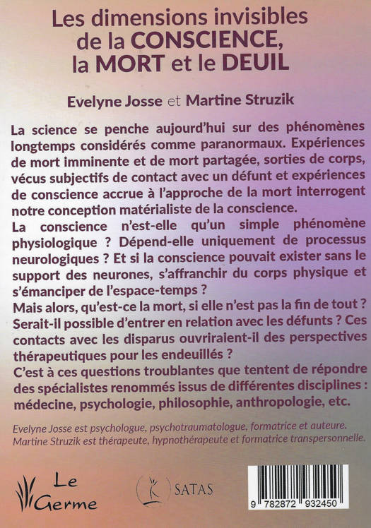 La science se penche aujourd'hui sur des phénomènes longtemps considérés comme paranormaux. Expériences de mort imminente et de mort partagée, sorties de corps, vécus subjectifs de contact avec un défunt et expériences de conscience accrue à l'approche de la mort interrogent notre conception matérialiste de la conscience. La conscience n'est-elle qu'un simple phénomène physiologique ? Dépend-elle uniquement de processus neurologiques ? Et si la conscience pouvait exister sans le support des neurones, s'affranchir du corps physique et s'émanciper de l'espace-temps ? Mais alors, qu'est-ce la mort, si elle n'est pas la fin de tout ? Serait-il possible d'entrer en relation avec les défunts ? Ces contacts avec les disparus ouvriraient-il des perspectives thérapeutiques pour les endeuillés ? C'est à ces questions troublantes que tentent de répondre des spécialistes renommés issus de différentes disciplines : médecine, psychologie, philosophie, anthropologie, etc.
