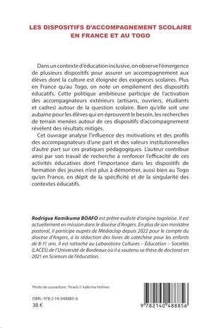 Dans un contexte d'éducation inclusive, on observe l'émergence de plusieurs dispositifs pour assurer un accompagnement aux élèves dont la culture est éloignée des exigences scolaires. Plus en France qu'au Togo, on note un empilement des dispositifs éducatifs. Cette politique ambitieuse participe de l'activation des accompagnateurs extérieurs (artisans, ouvriers, étudiants et cadres) autour de la question scolaire. Bien qu'elle soit une aubaine pour les élèves qui en éprouvent le besoin, les recherches de terrain menées autour de ces dispositifs d'accompagnement révèlent des résultats mitigés.