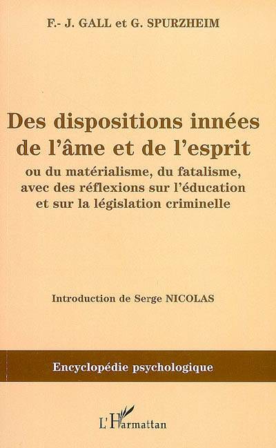 Cet ouvrage de 1811 est une réponse aux détracteurs de la phrénologie, développée en France par Gall et Spurzheim. Le livre est divisé en trois parties. Une partie répond aux questions suivantes: les propriétés de l'âme et de l'esprit sont-elles innées? Leur manifestation dépend-elle de conditions matérielles? Une deuxième partie traite du matérialisme, du fatalisme et de la liberté morale. Et enfin une dernière partie reprend ces principes pour les appliquer à l'homme, considéré comme objet d'éducation, de correction, de punition.
