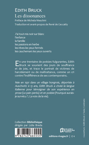 Les « dissonances » sont cette chambre d'écho où ces réminiscences se répondent et se confrontent au mal qui est fait aux innocents, qu'il s'agisse de juifs, de jeunes femmes, d'enfants ou de vieillards. Ce troisième recueil complétera les deux premiers, en constituant une sorte de triptyque sur le mal et sur la mémoire.