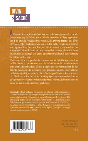 Voici la première analyse des Douze Tribus, groupe religieux très original car à l'heure où les spiritualités orientales et le New Age sont à la mode. C'est à partir de la Bible prise littéralement et exclusivement qu'il a élaboré sa théologie, sa morale et son organisation. Ses membres se vivent comme la restauration des anciennes tribus d'Israël. L'auteur étudie la tribu de Sus qu'elle a observée sur plusieurs années et elle livre les récits de vie des disciples et ses problèmes juridiques.