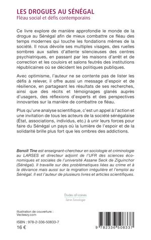Ce livre explore de manière approfondie le monde de la drogue au Sénégal afin de mieux combattre ce fléau des temps modernes qui touche les fondations mêmes de la société. Il nous dévoile ses multiples visages, des ruelles sombres aux salles d’attente silencieuses des centres psychiatriques, en passant par les maisons d’arrêt et de correction et les couloirs et salons feutrés des institutions républicaines où se décident les politiques publiques. Avec optimisme, l’auteur ne se contente pas de lister les défis à relever, il offre aussi un message d’espoir et de résilience, en partageant les résultats de ses recherches, ainsi que des récits et témoignages glanés auprès d’usagers, des réflexions d’experts et des perspectives innovantes sur la manière de combattre ce fléau. Plus qu’une analyse scientifique, c’est un appel à l’action et une invitation de tous les acteurs de la société sénégalaise (État, associations, individus, etc.) à unir leurs forces pour faire du Sénégal un pays où la lumière de l’espoir et de la solidarité brille plus fort que les ombres des addictions.