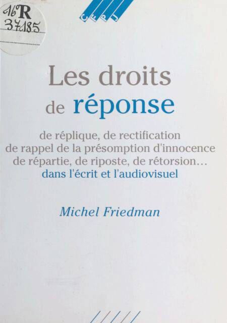 Les Droits de réponse, de réplique, de rectification, de rappel de la présomption d'innocence, de répartie, de riposte, de rétorsion… dans l'écrit et l'audiovisuel