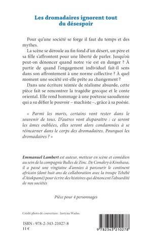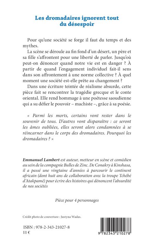 Pour qu'une société se forge il faut du temps et des mythes. La scène se déroule au fin fond d'un désert, un père et sa fille s'affrontent pour une liberté de parler. jusqu'où peut-on dénoncer quand notre vie est en danger ? A partir de quand l'engagement individuel fait-il sens dans son affrontement à une norme collective ? A quel moment une société est-elle prête au changement ? Dans une écriture teintée de réalisme absurde, cette pièce fait se rencontrer la tragédie grecque et le conte oriental. Elle rend hommage à une poétesse saoudienne qui a su défier le pouvoir - machiste -, grâce à sa poésie.