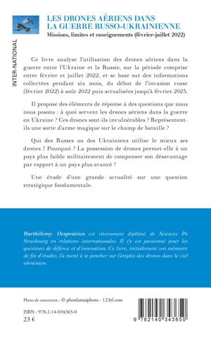 Cet ouvrage analyse l'utilisation des drones aériens dans la guerre entre l'Ukraine et la Russie, sur la période comprise entre février et juillet 2022, et se base sur des informations collectées pendant six mois, du début de l'invasion russe (février 2022) à août 2022 puis actualisées jusqu'à février 2023. Il propose des éléments de réponse à des questions que nous nous posons: à quoi servent les drones aériens dans la guerre en Ukraine ? Ces drones sont-ils invulnérables ? Représentent-ils une sorte d'arme magique sur le champ de bataille ? Qui des Russes ou des Ukrainiens utilise le mieux ses drones ? Pourquoi ? La possession de drones permet-elle à un pays plus faible militairement de compenser son désavantage par rapport à un pays plus avancé ? Une étude d'une grande actualité sur une question stratégique fondamentale.