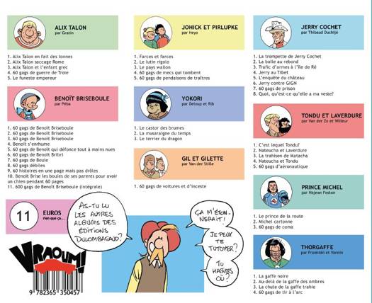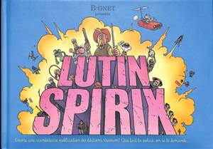 Avant Blueberry et après Astérix, il y a Lutin Spirix ! Lutin Spirix, c'est un peu LE héros : un mix entre Lucky Luke, Tintin, Spirou et Astérix. Il est journaliste, gaulois, cow boy et groom, il a tous les talents, il vit des aventures plus vite que son ombre, il est accompagné de plusieurs compagnons : le capitaine Obésio, le professeur Champagnol et, bien entendu, son chien, le fidèle Ran Pi Ploux. Ses adversaires sont, entre autres, les Daploncx, trois affreux frères jumeaux triplés porteurs de chapeau melon et de moustache en D ou en T ou les Strumpführers, peuple guerrier jaune aux yeux bleus. Héros au coeur pur, il doit résoudre de passionnantes aventures au café du commerce, psychanalyser les hordes hystériques de strumpfürer ou tenter de libérer un enfant japonais de son addiction aux jeux vidéo.