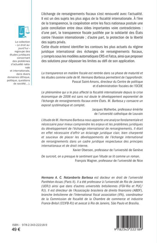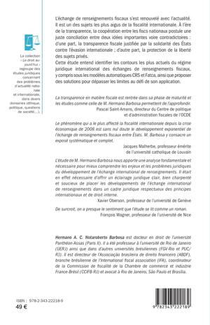 L'échange de renseignements fiscaux s'est renouvelé avec l'actualité. Il est un des sujets les plus aigus de la fiscalité internationale. À l'ère de la transparence, la coopération entre les fiscs nationaux postule une juste conciliation entre deux idées importantes voire contradictoires: d'une part, la transparence fiscale justifiée par la solidarité des États contre l'évasion internationale; d'autre part, la protection de la liberté des sujets privés. Cette étude entend identifier les contours les plus actuels du régime juridique international des échanges de renseignements fiscaux, y compris sous les modèles automatiques CRS et Fatca, ainsi que proposer des solutions pour dépasser les limites au défi de son application.