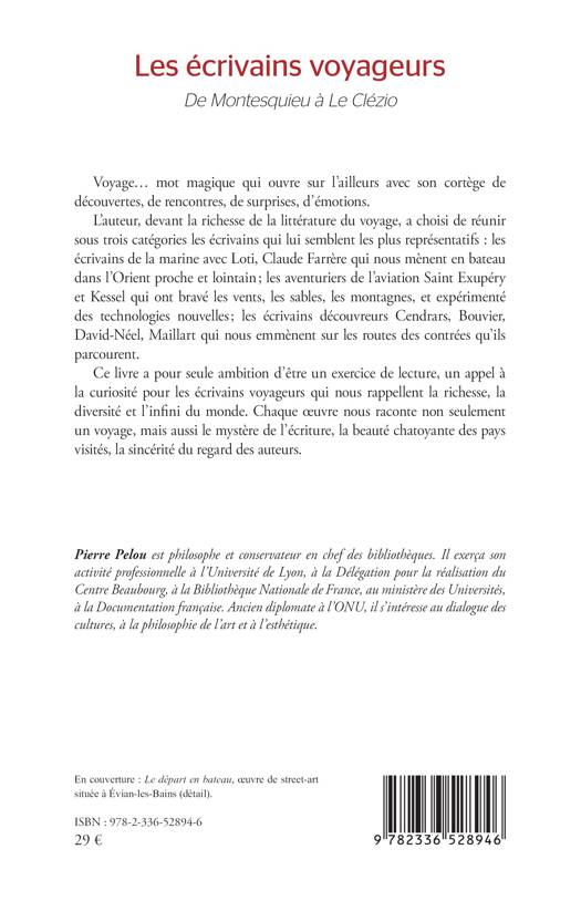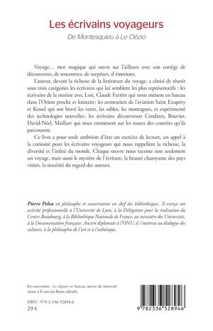 Voyage... mot magique qui ouvre sur l'ailleurs avec son cortège de découvertes, de rencontres, de surprises, d'émotions. L'auteur, devant la richesse de la littérature du voyage, a choisi de réunir sous trois catégories les écrivains dont l'écriture, les mondes qui les ont inspirés, lui semblent les plus représentatifs les écrivains de la marine avec Loti, Claude Farrère qui nous mènent en bateau dans l'Orient proche et lointain; les aventuriers de l'aviation Saint Exupéry et Kessel qui ont bravé les vents, les sables, les montagnes, expérimentent des technologies nouvelles; les écrivains découvreurs Cendrars, Bouvier, David-Néel, Maillart qui nous emmènent sur les routes des contrées qu'ils parcourent. Ce livre a pour seule ambition d'être un exercice de lecture, un appel à la curiosité des écrivains voyageurs qui nous rappellent la richesse, la diversité et l'infini du monde. Chaque oeuvre nous raconte non seulement un voyage, mais aussi le mystère de l'écriture, la beauté chatoyante des pays visités, la sincérité des styles des auteurs.