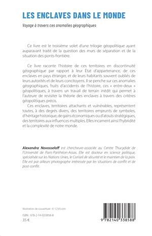 Ce livre est le troisième volet d’une trilogie géopolitique ayant auparavant traité de la question des murs de séparation et de la situation des ponts-frontière. Il raconte l’histoire de ces territoires en discontinuité géographique par rapport à leur État d’appartenance, de ces enclaves en pays étranger, et de leurs habitants souvent oubliés de leurs concitoyens éloignés. Il raconte ces bizarreries géographiques, fruits d’accidents de l’histoire, ces « entre-deux » géopolitiques, à travers un travail de terrain inédit qui permet à l’auteur de revisiter la théorie des enclaves à travers des critères géopolitiques précis. Ces enclaves, territoires attachants, représentent toutes, à des degrés divers, des territoires emprunts de symboles, d’héritage historique, de gains économiques ou d’atouts stratégiques, des territoires aux influences multiples. Ils incarnent ainsi l’hybridité et la complexité de notre monde.