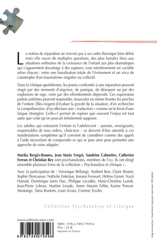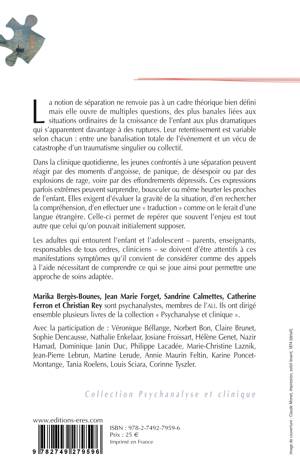 Dans la clinique quotidienne, les manifestations des jeunes confrontés à une séparation peuvent s’exprimer par des moments d’angoisse, de panique, de désespoir ; ou par des explosions de rage ; voire par des effondrements dépressifs. Ces expressions parfois extrêmes peuvent surprendre, bousculer, voire heurter les proches de l’enfant. Elles exigent d’en évaluer la gravité, d’en rechercher la compréhension, voire d’en effectuer une « traduction » comme on le ferait d’une langue étrangère. Celle-ci permet de repérer que souvent l’enjeu était tout autre que celui qu’on pouvait initialement, supposer.