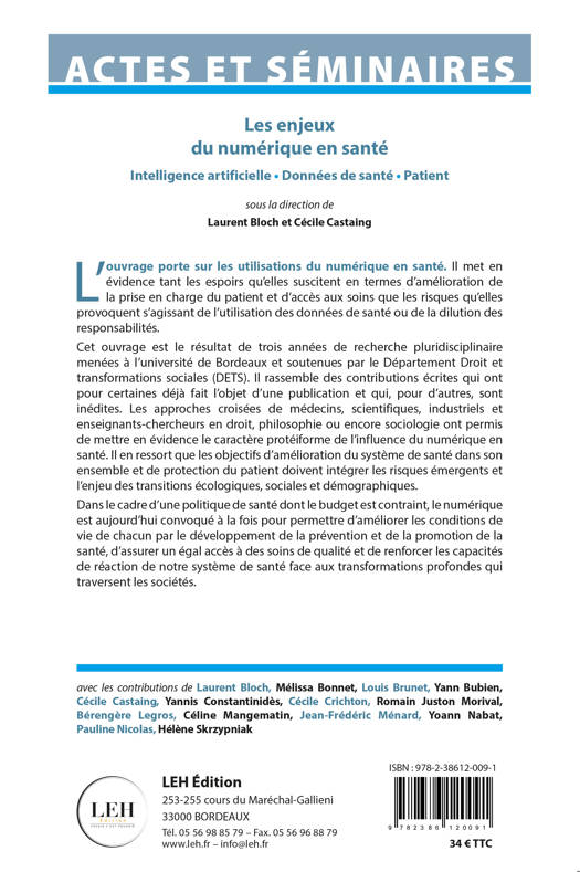 L’ouvrage porte sur les utilisations du numérique en santé. Il met en évidence tant les espoirs qu’elles suscitent en termes d’amélioration de la prise en charge du patient et d’accès aux soins que les risques qu’elles provoquent s’agissant de l’utilisation des données de santé ou de la dilution des responsabilités.