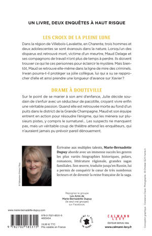 Les Croix de la pleine lune Dans la région de Villebois-Lavalette, en Charente, trois hommes et deux adolescentes se sont évanouis dans la nature. Lorsqu’un des disparus est retrouvé mort, victime d’un meurtre, Maud Delage et ses compagnons de travail n’ont plus de temps à perdre. Ils doivent trouver ce qui lie ces personnes pour éclaircir le mystère. Mais bientôt, Maud se retrouve elle-même dans la ligne de mire des criminels. Irwan pourra-t-il protéger sa jolie collègue, lui qui a su se rapprocher d’elle et ainsi prendre une longueur d’avance sur Xavier ?