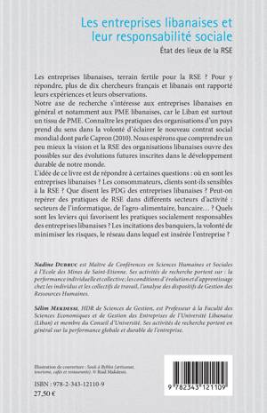 Les entreprises libanaises, terrain fertile pour la RSE (responsabilité sociale des entreprises) ? Pour éclairer le nouveau contrat social mondial dont parle Michel Capron, les contributeurs de ce livre tentent de répondre à certaines questions en s'intéressant au cas du Liban : où en sont les entreprises libanaises ? Les consommateurs sont-ils sensibles à la RSE ? Peut-on repérer des pratiques de RSE dans différents secteurs d'activité : informatique, agro-alimentaires, bancaire...? Quels sont les leviers qui favorisent les pratiques socialement responsables des entreprises libanaises ?