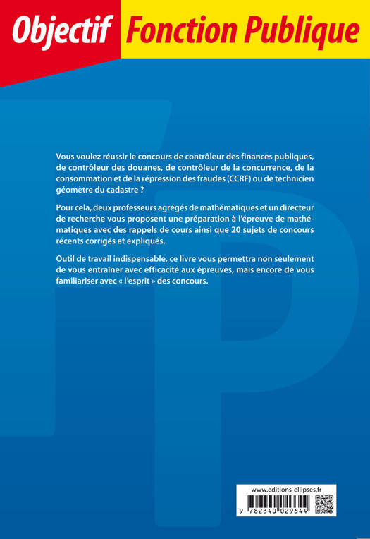 Vous voulez réussir l’épreuve de mathématiques aux concours de contrôleur des finances publiques, de contrôleur des douanes, de contrôleur de la concurrence, de la consommation et de la répression des fraudes (CCRF) ou de technicien géomètre du cadastre ?