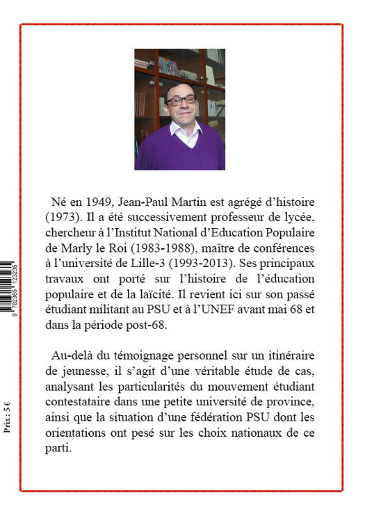 Le désir de témoigner de mes années militantes à Saint-Étienne à l’Unef et au PSU entre l’automne 1968 et l’été 1971 est né en. J’ai cependant étendu mes investigations à la période de Mai 68 elle-même, dont je n’avais pas connaissance directe, n’étant pas sur place à l’époque. <br /> Ce propos vise plusieurs objectifs. Évoquer les personnes que j’ai rencontrées, reconstituer les faits auxquels j’ai participé, ainsi que l’histoire de mes pensées politiques et de mon itinéraire idéologique...Voilà pour la dimension personnelle, où j’ai tenté de me faire l’historien de moi-même en quelque sorte. Mais j’ai aussi essayé d’objectiver une expérience collective avec la volonté d’en transmettre la mémoire. Longtemps pareil exercice m’aurait paru vain, sinon ridicule. À quoi bon jouer aux anciens combattants d’une révolution qui n’a pas eu lieuâ? Et quel besoin d’évoquer un univers de pensée dont les questionnements ne sont plus les nôtresâ? Ce déni a été largement partagé par la génération de 68.<br />
