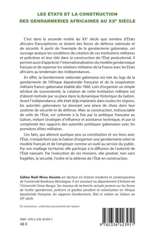 C'est dans la seconde moitié du XXe siècle que nombre d'États africains francophones se dotent des forces de défense nationale et de sécurité. À partir de l'exemple de la gendarmerie gabonaise, cet ouvrage analyse les conditions de création de ces institutions militaires et policières et leur rôle dans la construction de l'État postcolonial. Il permet aussi d'apprécier l'internationalisation du modèle gendarmique français et de repenser les relations militaires de la France avec les États africains au lendemain des indépendances. En effet, la Gendarmerie nationale gabonaise est née du legs de la gendarmerie de l'Afrique équatoriale française et de la coopération militaire franco-gabonaise établie dès 1960. Loin d'organiser un simple attribut de souveraineté, la création de cette institution militaire est d'abord motivée par sa place dans la dynamique historique du Gabon. Avant l'indépendance, elle était déjà implantée dans toutes les régions. Et son rôle en matière de sécurité et de maintien de l'ordre public est vraisemblablement apprécié par les autorités administratives, judiciaires et militaires. C'est pourquoi, les autorités gabonaises lui donnent une place de choix dans leur système de sécurité et de défense. Mais sa construction, indissociable de celle de l'État, est rythmée à la fois par la politique française au Gabon, mêlant stratégies d'influence et assistance technique, et par la complexité des rapports des autorités politiques gabonaises avec les premières élites militaires. Ces faits, qui altèrent quelque peu sa constitution et ses liens avec l'État, n'empêchent pas le Gabon d'organiser une gendarmerie selon le modèle français et de l'employer comme un outil au service du public. Par son maillage territorial, elle participe à la diffusion de l'autorité de l'État naissant. Par l'exécution de ses missions, elle produit, non sans fragilités, la sécurité, l'ordre et la défense de l'État en construction.