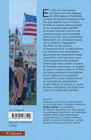 E n 250 ans d'existence, les États-Unis ont dépassé les 330 millions d'habitants, conquis un territoire presque vingt fois plus étendu que la France, inventé un régime démocratique d'une exceptionnelle stabilité et se sont imposés comme une superpuissance incontournable dans le monde. Leurs adversaires dénoncent une civilisation basée sur la violence, l'oppression des Noirs et des Indiens, le messianisme et le matérialisme. Les divisions plus importantes que jamais qui traversent le pays aujourd'hui sont l'occasion pour cette exceptionnelle synthèse d'interroger deux points cruciaux de l'histoire américaine : le rapport du pays à la démocratie et à l'État; son positionnement international et son rapport à la puissance. Aujourd'hui, entre isolationnisme et impérialisme, attachement à leurs valeurs et remise en cause de leurs institutions, les États-Unis sont à la croisée des chemins.