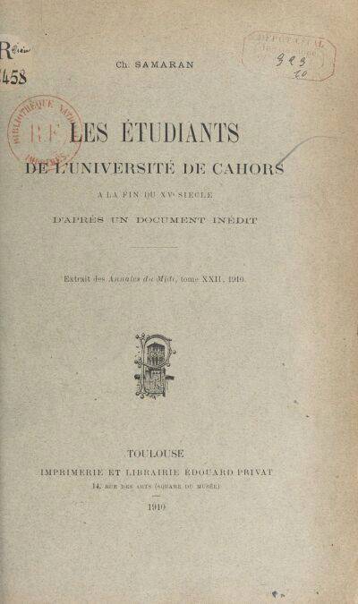 5. Les étudiants de l'Université de Cahors à la fin du XVe siècle