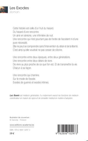 C'est histoire d'une rencontre. Un ainé en séniorie, une infirmière de nuit. Une rencontre qui n'est pas de l'ordre de l'accident ni d'une pure nécessité. Elle ne peut se comprendre sans l'intervention du désir, de la liberté. Une rencontre entre deux époques, deux générations. Entre deux désirs de vivre. Vivre au plus proche de ce que l'on est. Et transmettre la vie. Chacun à sa façon. Une rencontre qui chemine. Sur le mode de l'exode. Exodes de guerres et exodes intimes.