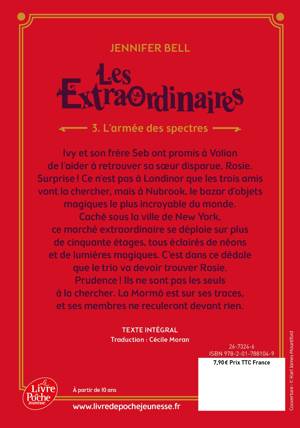 Ivy et Seb ont promis à leur ami Valian de l’aider à trouver sa sœur disparue. Surprise, ce n’est pas à Londinor, ce marché d’objets magiques caché sous Londres, que leur enquête commence, mais à Niubrook, le plus grand bazar souterrain du monde. Et il est caché… sous la ville de New York. La traversée depuis l’Angleterre se fera à bord d’un porte-savon/sous-marin magique. L’aventure les attend, et la Guilde déchue également. Alors que cette organisation maléfique se prépare à la bataille avec une armée de spectres, Ivy, Seb et Valian devront faire appel à toute leur ingéniosité (et toute leur magie) pour sauver le monde Extraordinaire.
