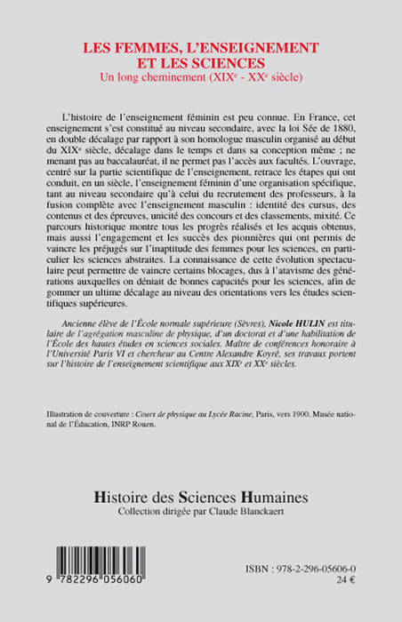 L'ouvrage, centré sur la partie scientifique de l'enseignement, retrace les étapes qui ont conduit, en un siècle, l'enseignement féminin d'une organisation spécifique à la fusion complète avec l'enseignement masculin : identité des cursus, des contenus et des épreuves, unicité des concours et des classements, mixité. Ce parcours historique montre tous les progrès réalisés et les acquis obtenus, mais aussi l'engagement et les succès des pionnières qui ont permis de vaincre les préjugés sur l'inaptitude des femmes pour les sciences.